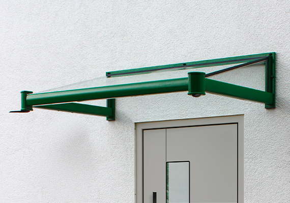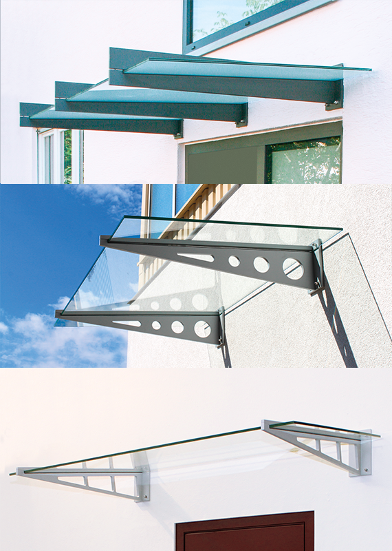 • Freitragendes Vordach ohne Zugstangen